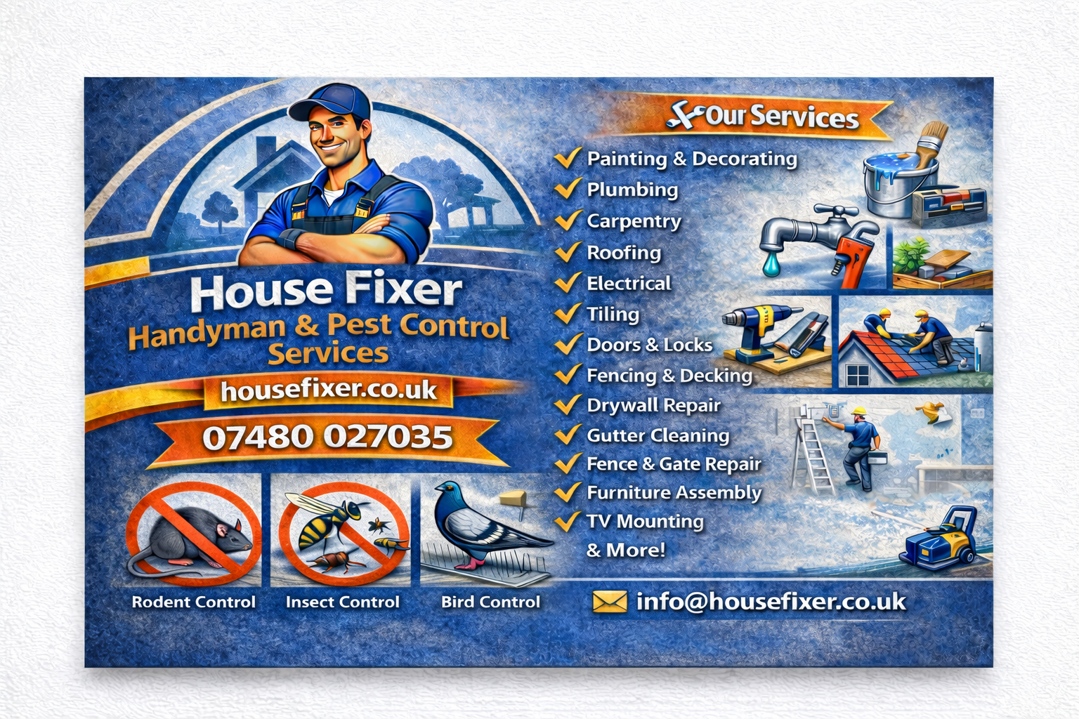 Reliable handyman and pest control services for homes and businesses. From everyday repairs and home improvements to professional pest control for rodents, insects, wasps, and birds, House Fixer delivers quality workmanship you can trust.